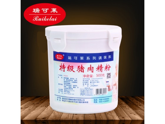 2、將豬肉依次加入鹽,特級豬肉精粉,糖,叉燒醬,酒,生抽,老抽,蠔油,蒜末等材料