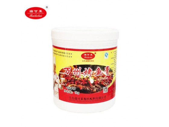 2、加入25克瑞可萊”萬州烤魚飄香膏或“瑞利斯”烤魚飄香膏,適量料酒、食鹽、自制剁椒,蓋上保鮮膜放入冰箱冷藏2個小時間。